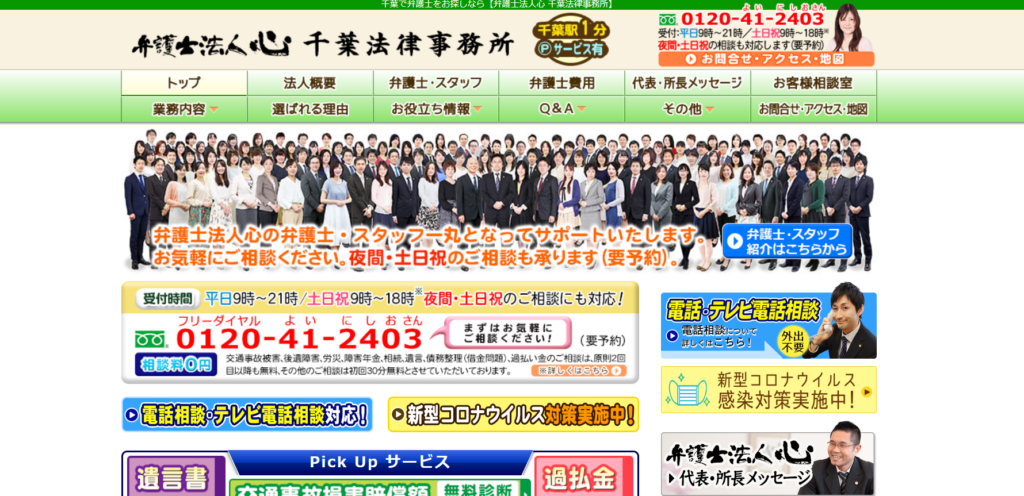 | 東京ロータス 法律事務所 | ひばり 法律事務所 | アース 法律事務所 | アディーレ 法律事務所 | 弁護士法人心 千葉法律事務所 | さくら北総法律事務所 | 五代法務事務所 | |