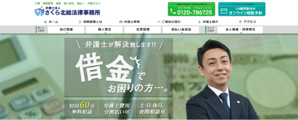 さくら北総法律事務所は、船橋・柏・木更津に拠点を持ち、千葉県を中心に幅広い相談に対応している法律事務所です。過払い金請求や債務整理などの借金問題はもちろん、相続、離婚、刑事事件など多様な分野を扱っており、各分野には専門チームが対応します。