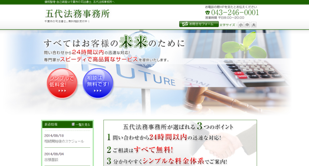 五代法務事務所は、千葉県を中心に活動する地域密着型の司法書士事務所です。過払い金請求や債務整理をはじめ、不動産登記などさまざまな案件に対応しています。