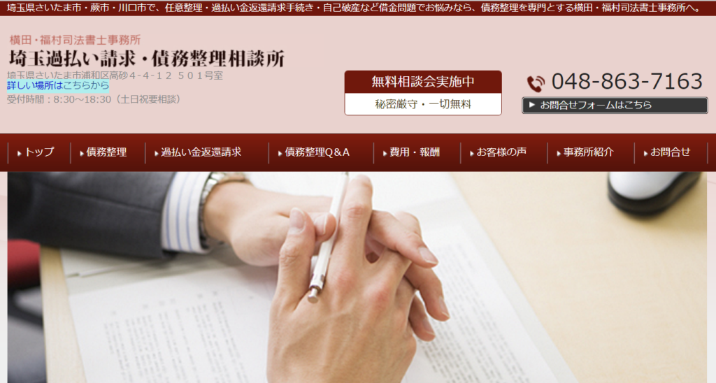 埼玉で債務整理を①主要業務として取り扱い、②相談が何回でも無料、③対応が良いと評判の債務整理に強い事務所を、おすすめ順にご紹介します。