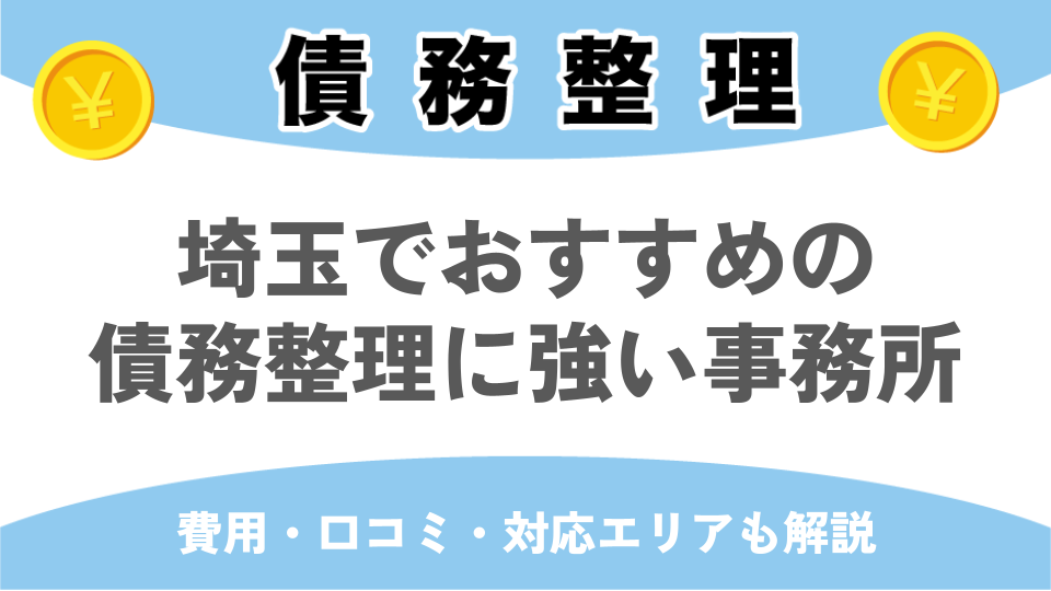 埼玉で債務整理を①主要業務として取り扱い、②相談が何回でも無料、③対応が良いと評判の債務整理に強い事務所を、おすすめ順にご紹介します。